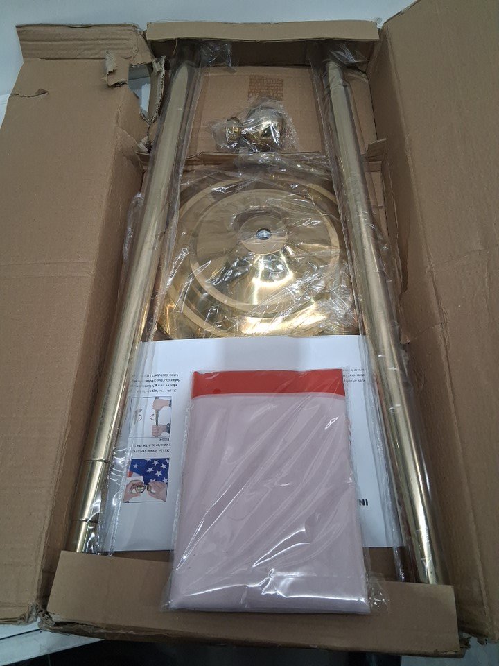 Indoor Aluminum Commercial Canadian Flagpole Kit with Weighted & Thickened Base - 6FT - 8FT Pole - Gold/Canada