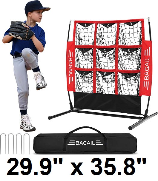 Bagail baseball softball 9 pocket pitching net with carrying bag - 29.9" x 35.8" - Red/black (Model: PT02-RED)