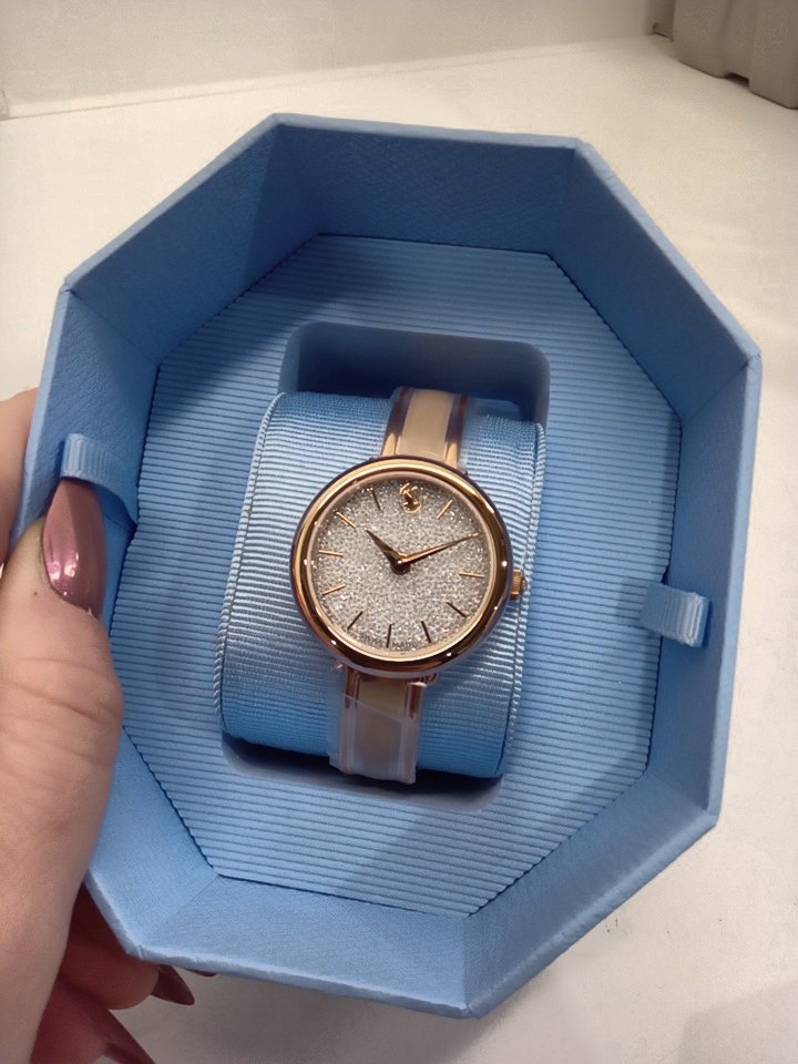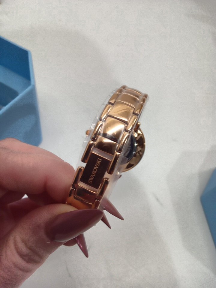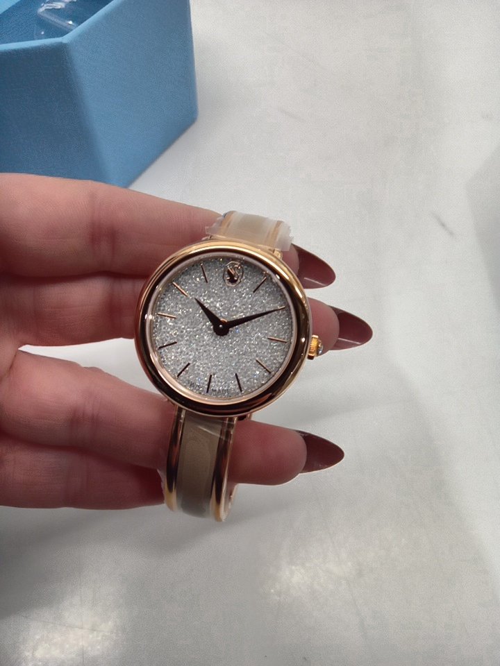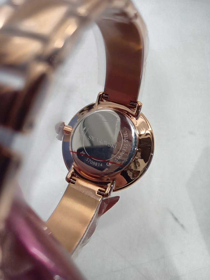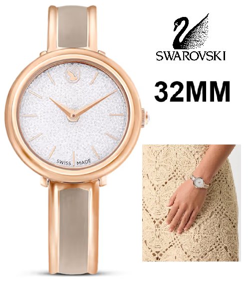 womens Swarovski Crystalline bangle watch - 32mm case - Made in Switzerland, Metal Bracelet, Beige, Rose Gold Finish (model: 5709814)