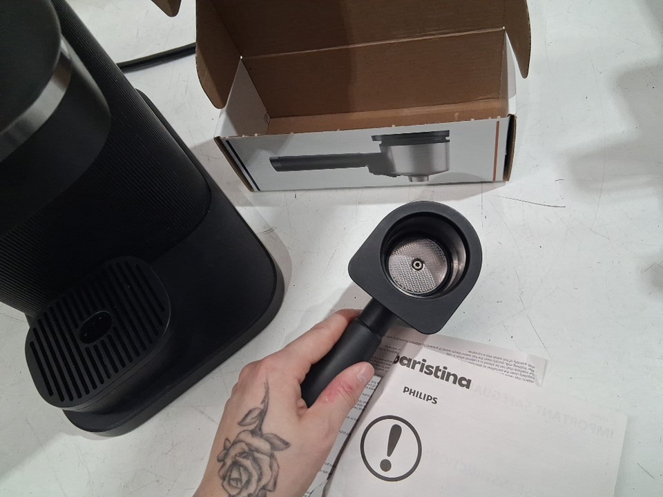 Tested for power, there is some coffee residue and some food residue on the grin's container and water compartment, see photos.