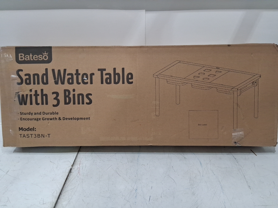 bateso wooden sensory sand water table with 3 bins & double-sided boards -21" x 42" x 19.5" (model: TAST3BN-T)