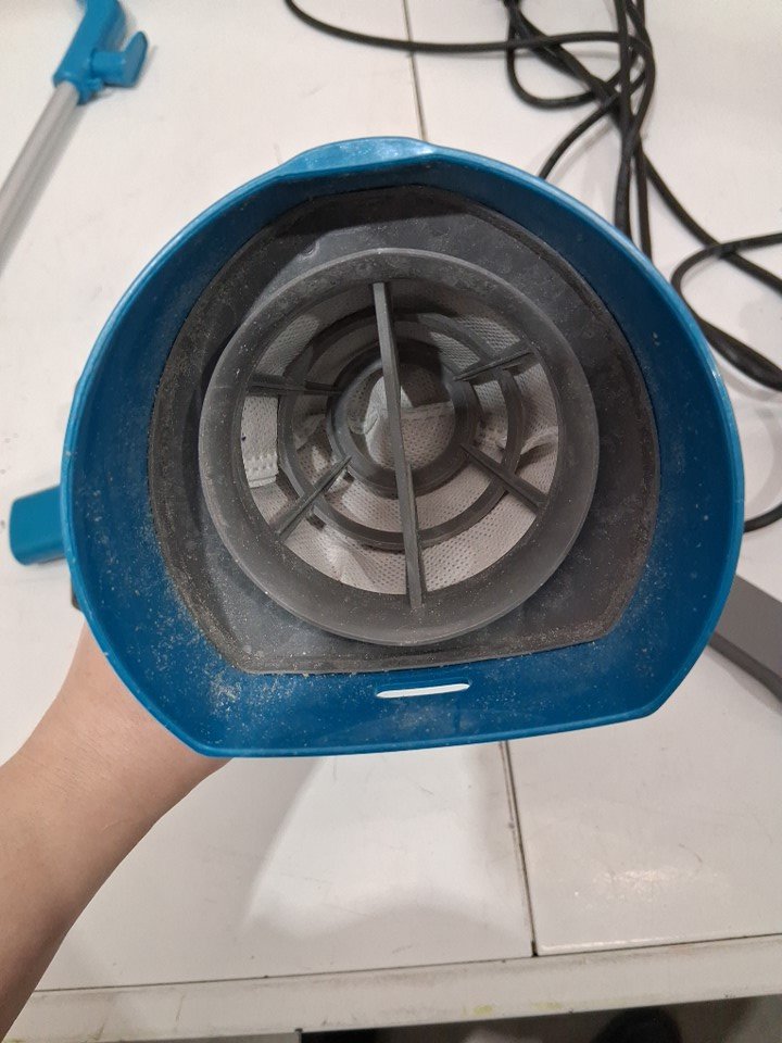 item shows signs of light use. Small minor scratches on handle attachment, dust/dirt present in main chamber, light wear on floor attachment wheels (see photos). tested for power.