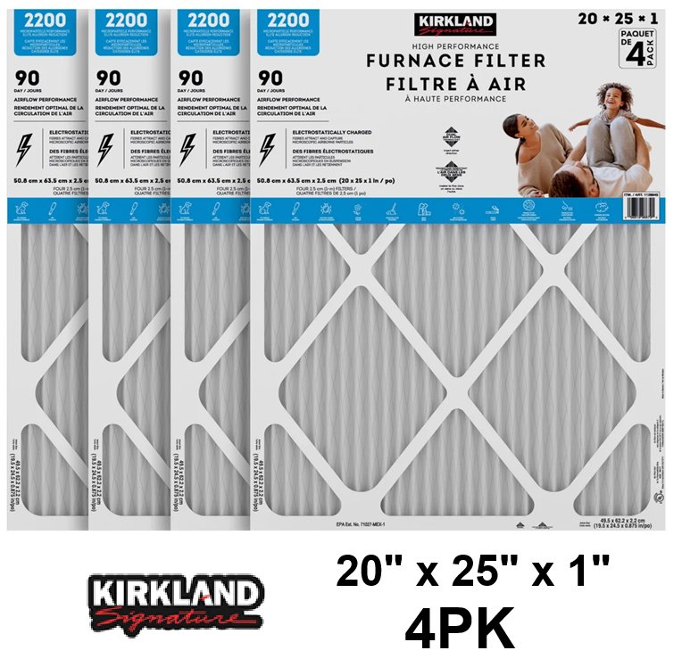 4PK Kirkland Signature High Performance Air Filters - 20" X 25" X 1" (MODEL:1128645)