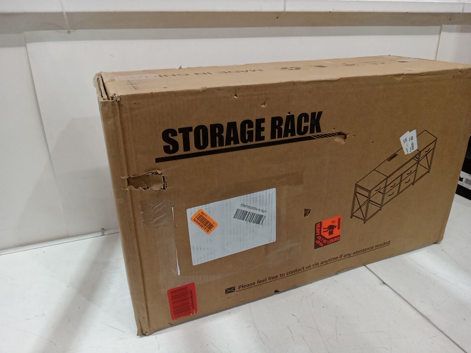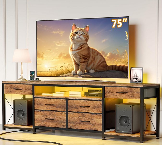 GYIIYUO Rustic LED TV Stand with 6 Fabric Drawers and Power Outlet - for 65" to 75" TVs - 63" x 25" x 14" - brown/black