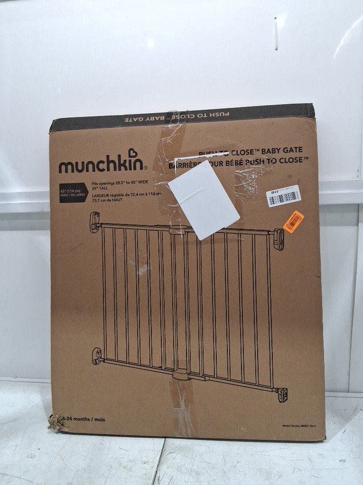 MUNCHKIN PUSH TO CLOSE BABY GATE FOR STAIRS WITH HARDWARE - 28.5" - 45" x 29" - BLACK (MODEL: MK0001)