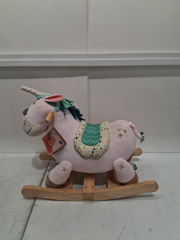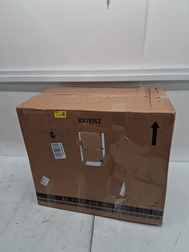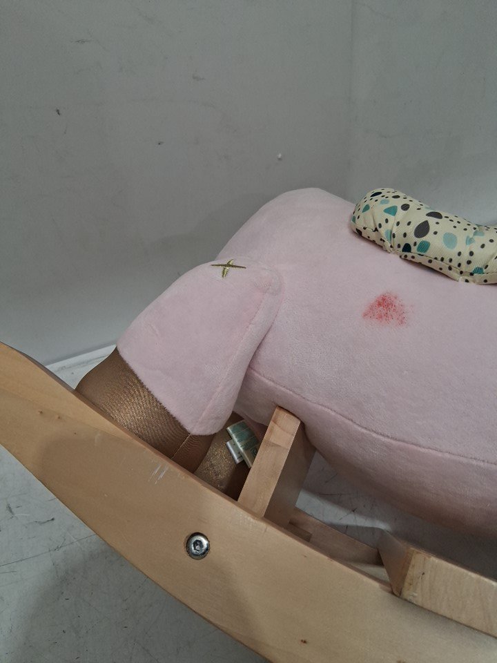 please note the product was discovered to have some scratches in the wood, dirt on the fabric, and a stain on the side, this can be cleaned, please see photos for more details