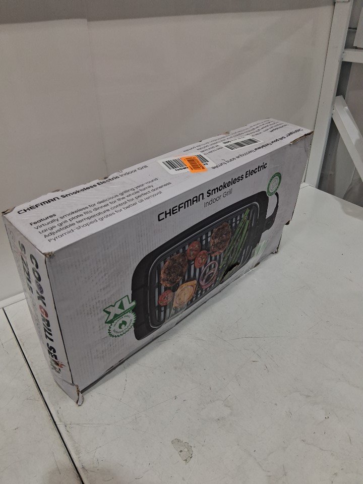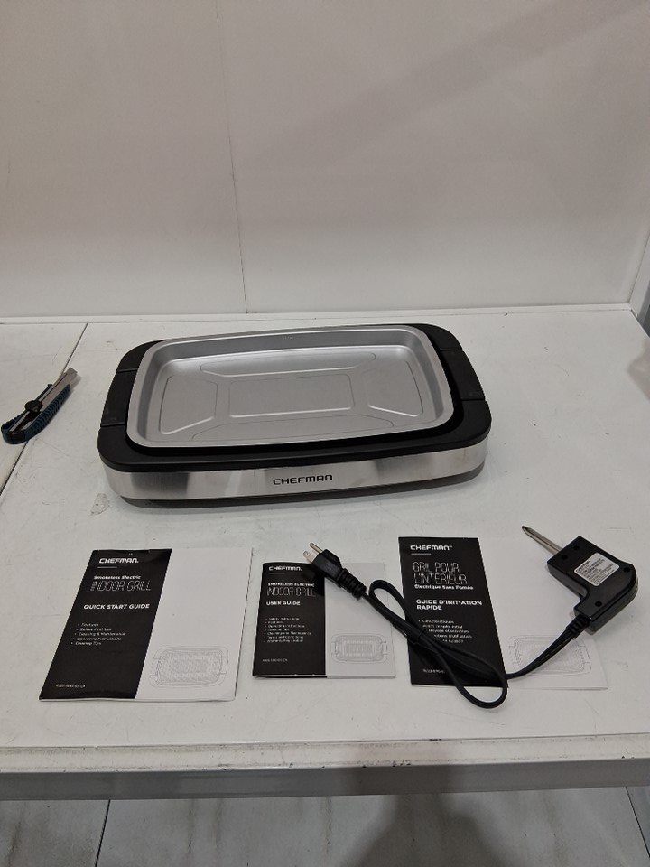 chefman smokeless indoor electric non-stick grill - dishwasher safe - 20.9'' x 11'' - 1500W - 120v - stainless steel/black (model: ‎ RJ23-SPG-SS-CA)