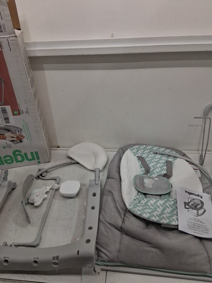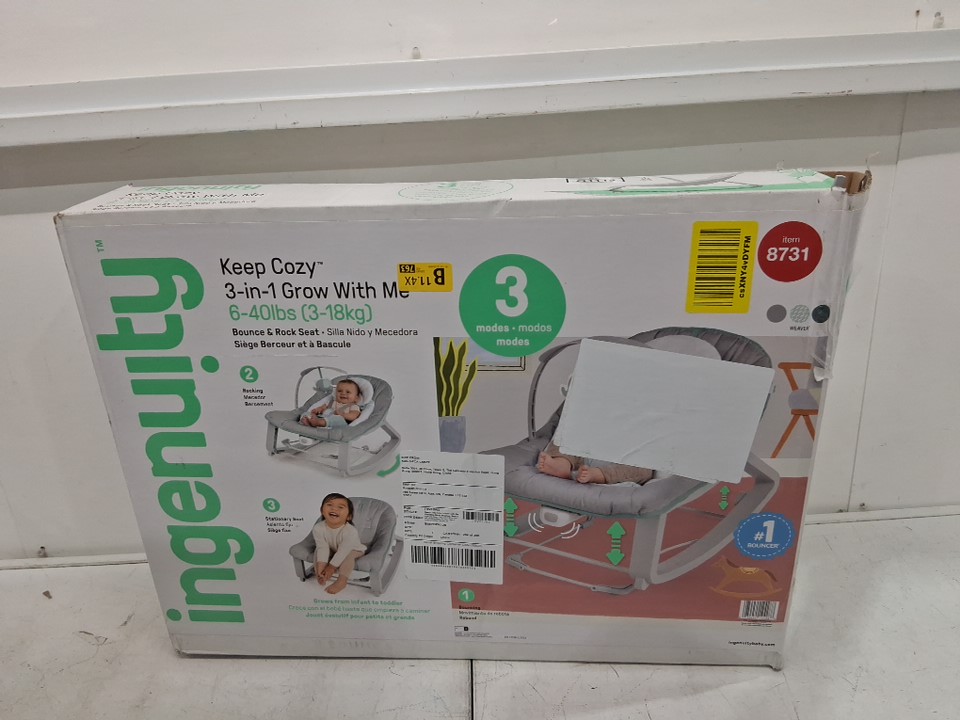 Ingenuity Keep Cozy 3-in-1 Grow with Me Vibrating Baby Bouncer Seat & Infant to Toddler Rocker - grey/white/green (model: ‎12428)