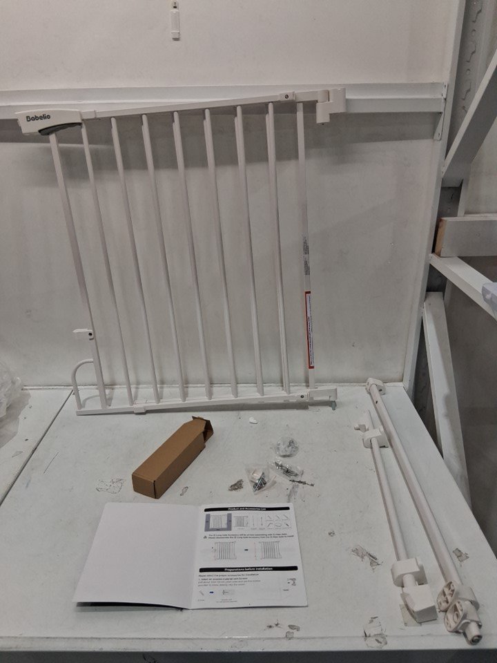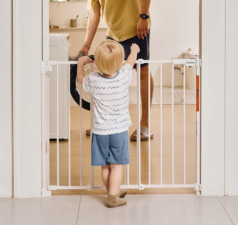 babelio no bottom bar child and pet gate hardware mounted - 29" to 43" - white (model: BEBAM63)