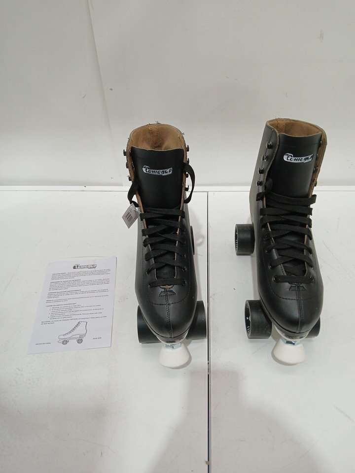 Men's Chicago Skates professional roller skates premium leather lined - Size 12 - Black/silver/white (Model: CRS805)