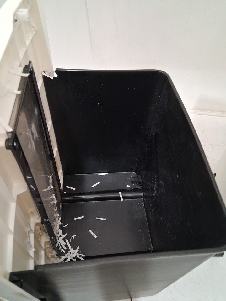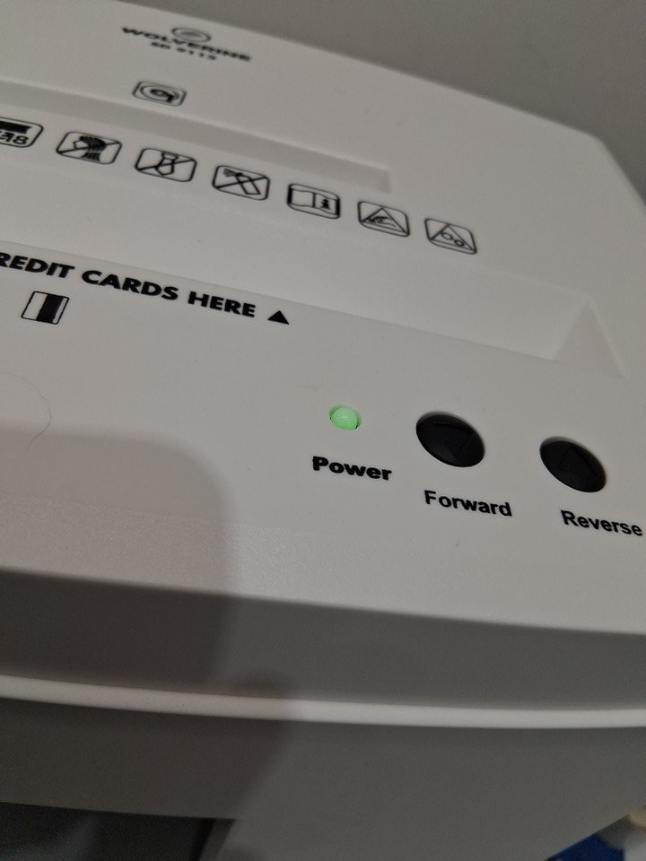 There are some scratches and stains/marks on the shredder indicating previous handling/use (see photos). Tested for power.