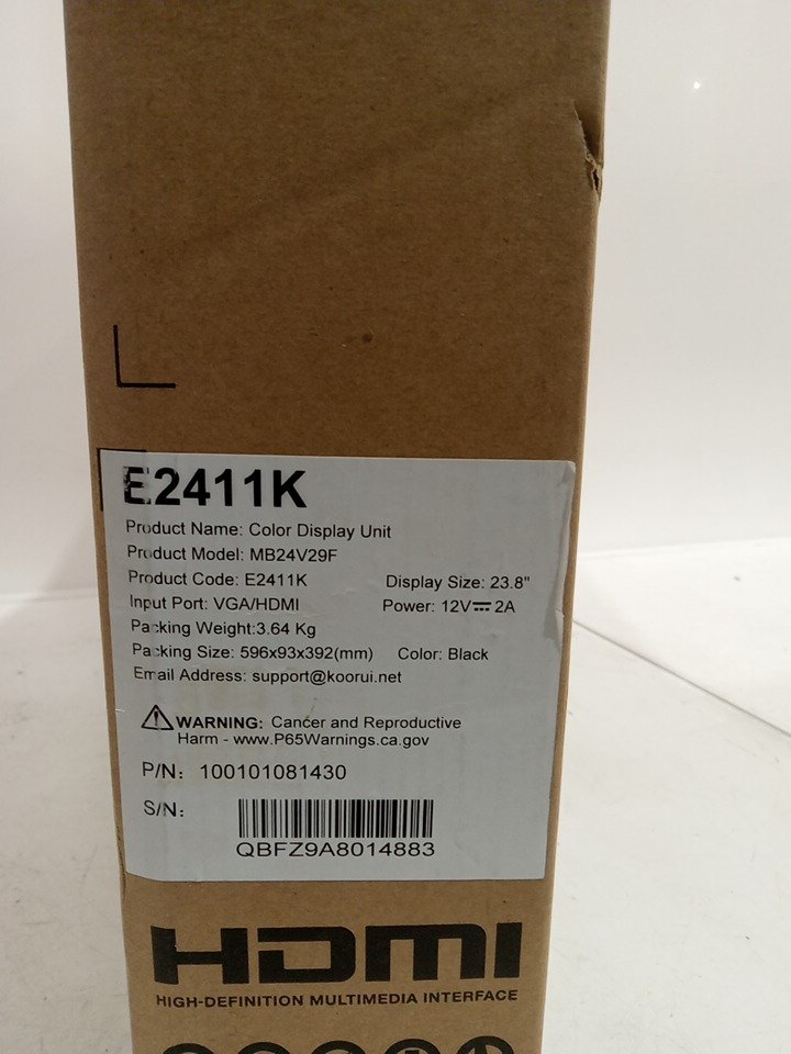 KOORUI e2412f 23.8" Low blue light flicker-free office monitor - 1920 x 1080p - 100hz - black (model: mb24v29f)
