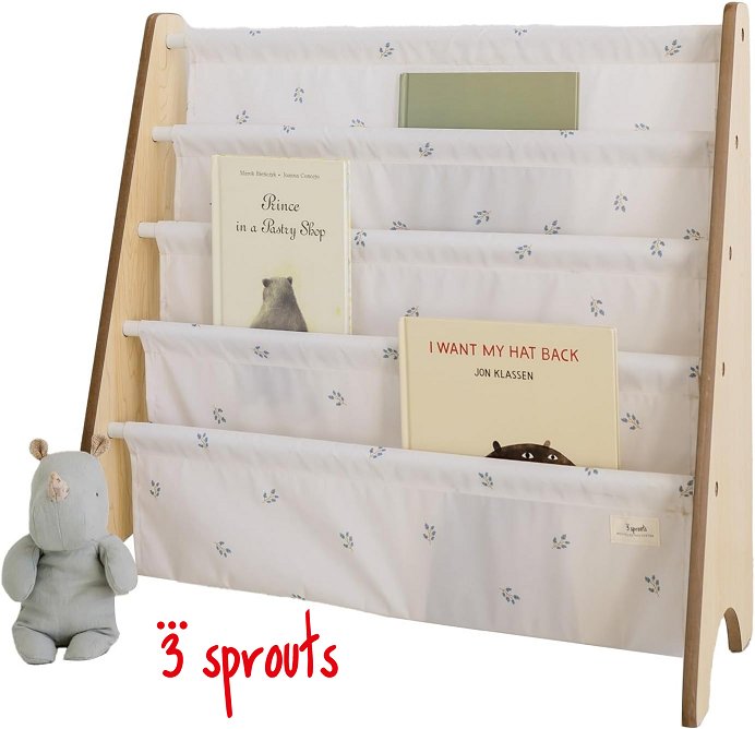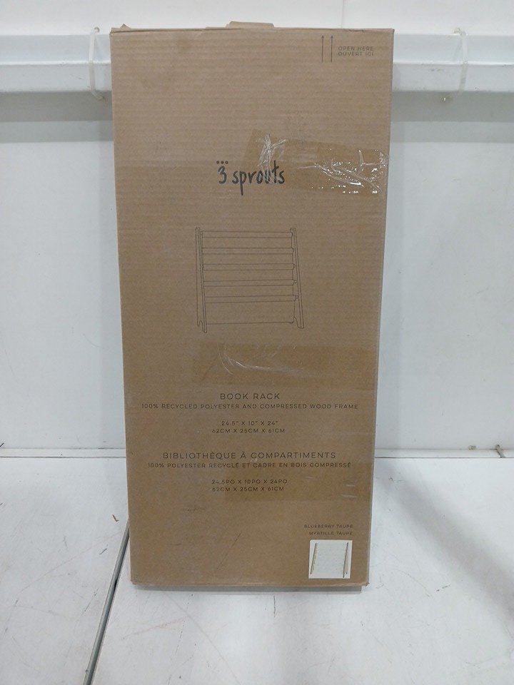 3 sprouts 4-tier recycled fabric book rack - 24.5" x 24" x 10"- wooden/blueberry Taupe