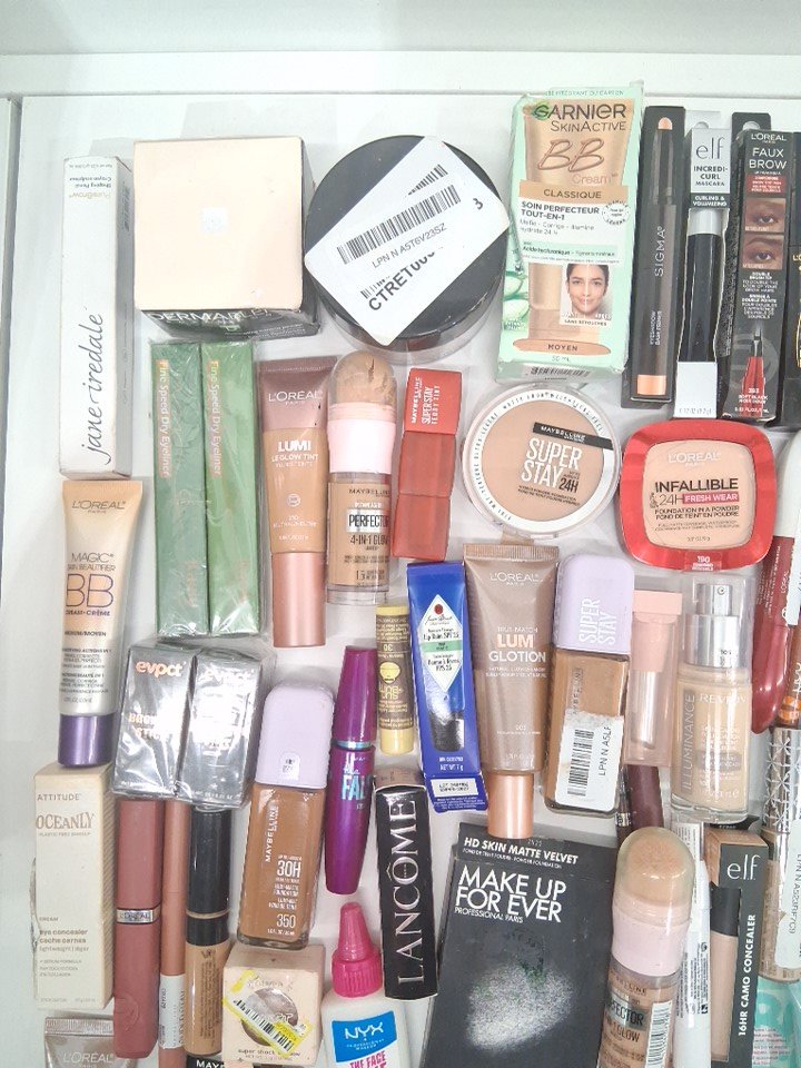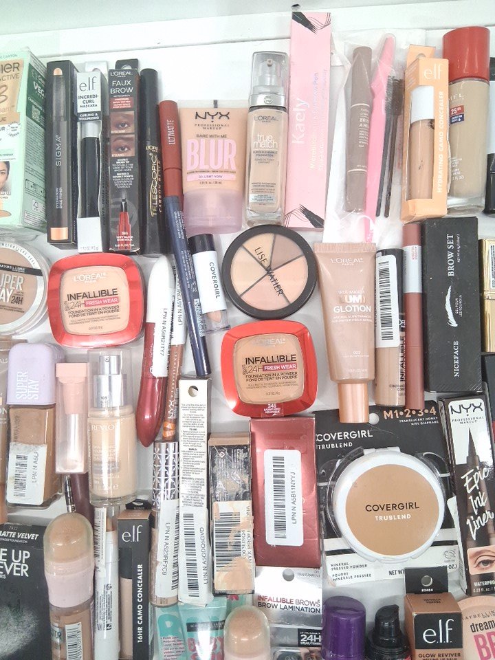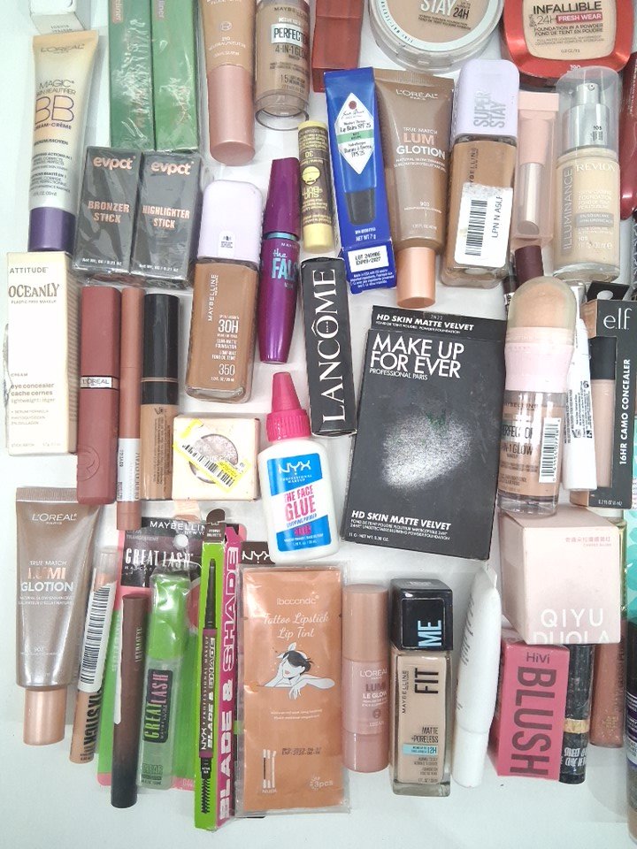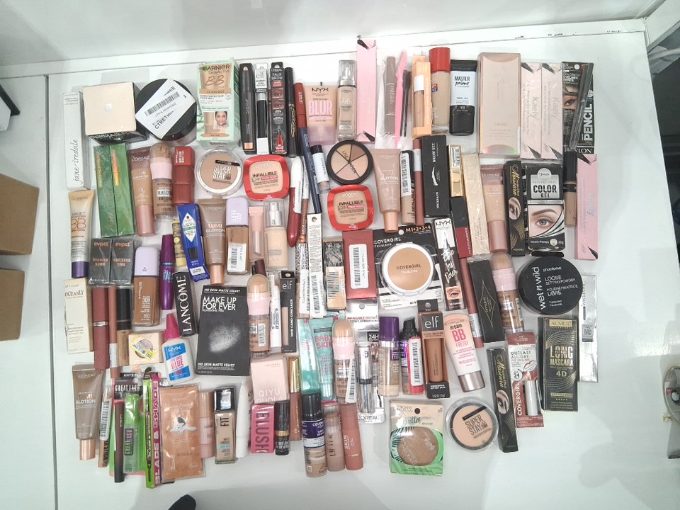 100+ assorted makeup products - assorted brands, colours and finishes - concealer / mascara / lipstick / foundation / brow pencil / blush / lip liner / eyeliner