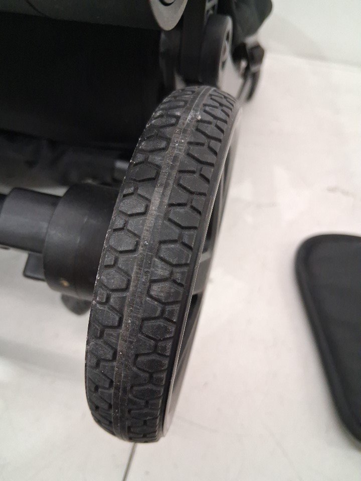 please note that it is missing the strap padding and the cup holder pictured in the cover photo, however it does not affect the machine. the wheels do show minimal wear. (see photos).