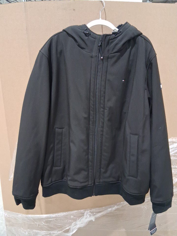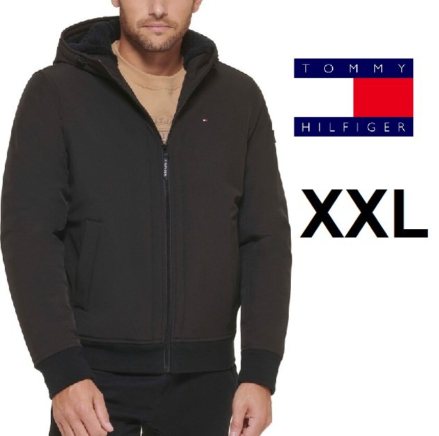 men's tommy Hilfiger Softshell Performance Hooded Fleece-Lined Bomber jacket - xxl -black (style151ap383):