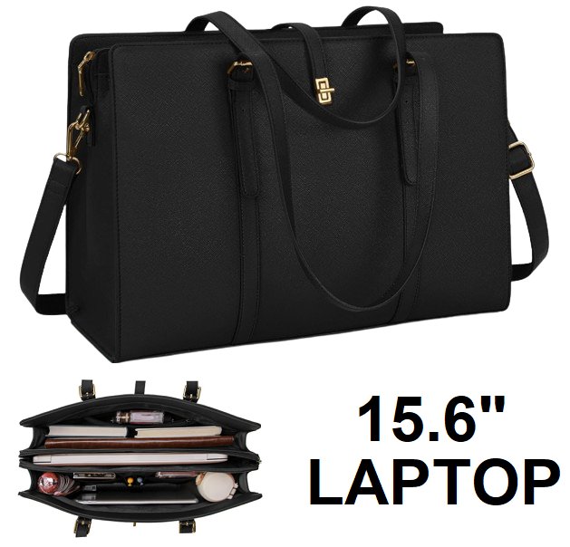 WOMEN'S IGOLUMON WATERPROOF, LIGHTWEIGHT, COMPUTER TOTE, ZIPPER COMPARTMENT SHOULDER BAG- 15.6 LAPTOP- BLACK