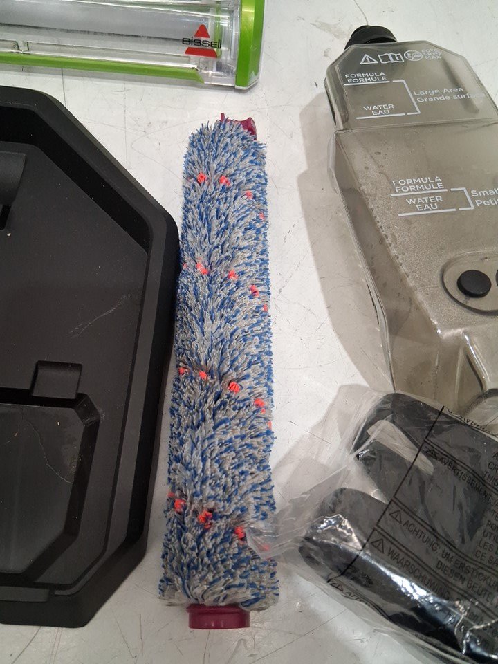 Item has some dirt/water residue and some dirt on the rolling brush from previous use. Item is missing the cleaning solution bottle. Tested for basic power only.