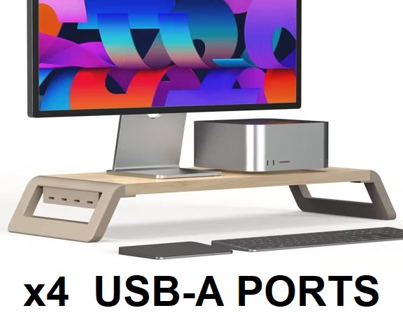 NORTH MONITOR STAND RISER WITH HUB ( X4 USB-A PORTS ) - 21" X 8" X 3" H - Wood