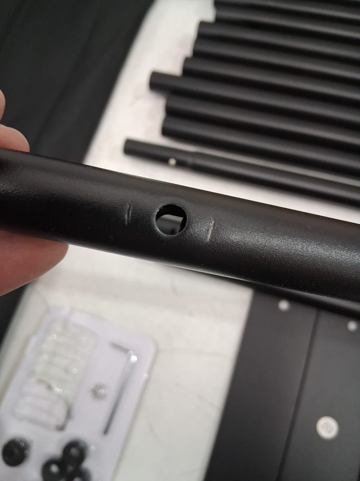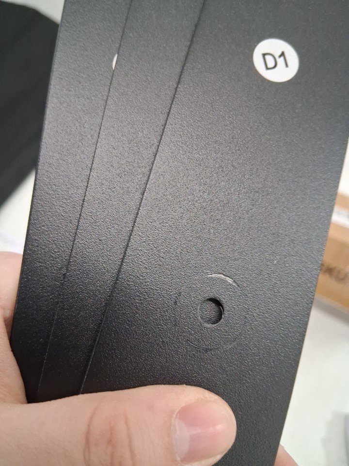 Product has some light instillation marks around assembly holes indicating previous assembly (See photos)