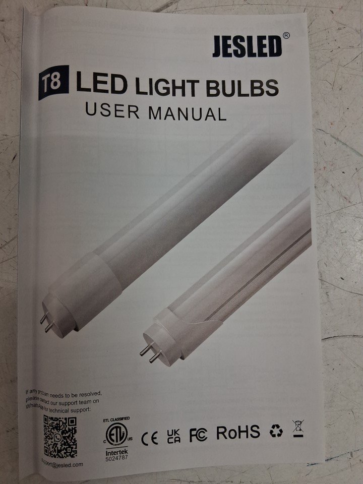 12PK JESLED T8 LED TUBE LIGHT BULBS - 4FT - 24W - 6000K-6500K - clear