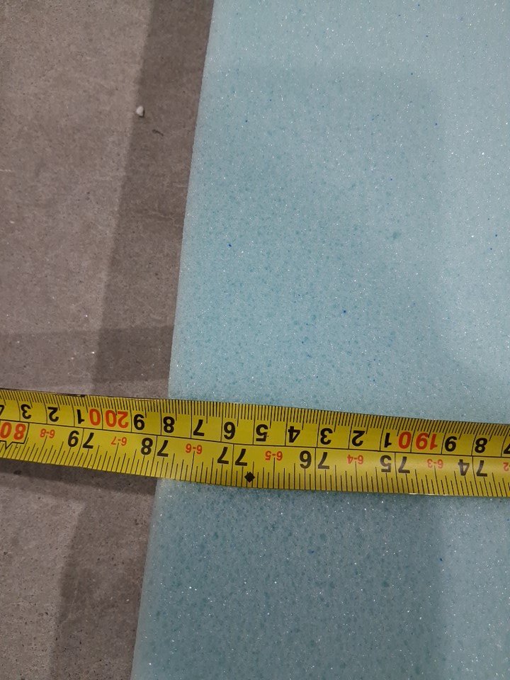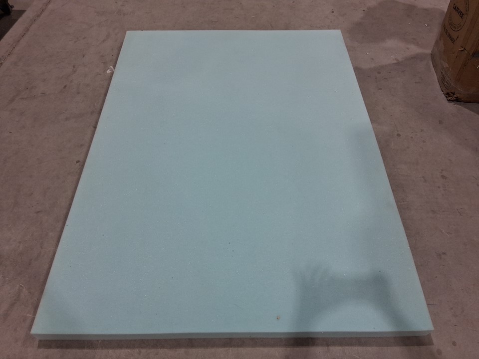 Light hairs on the topper, as well small rips in the foam Additional dirt and dust from warehouse floor