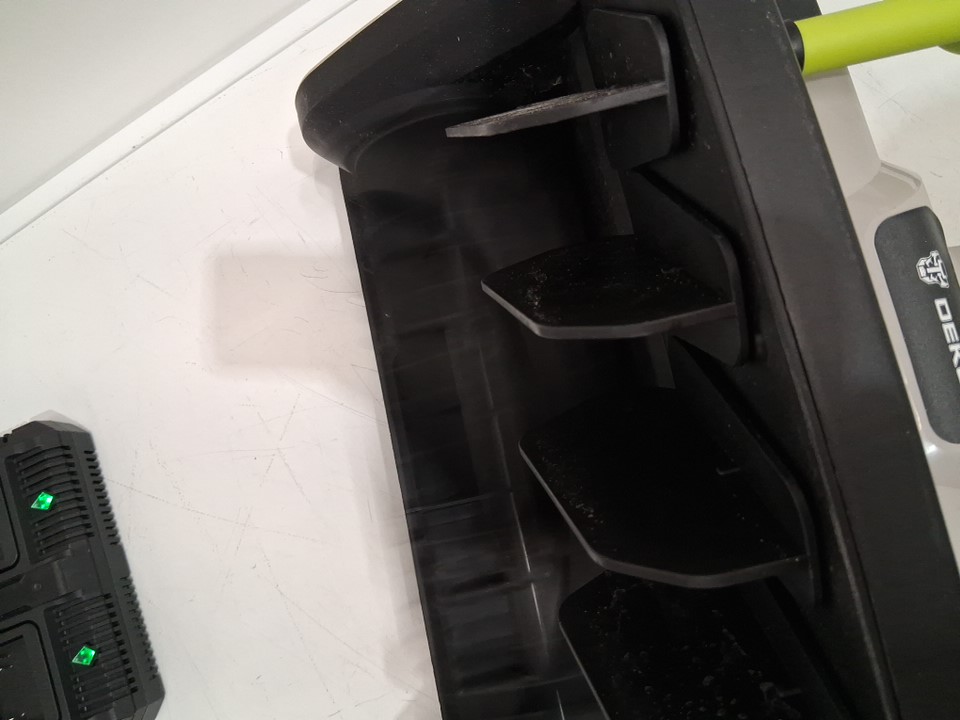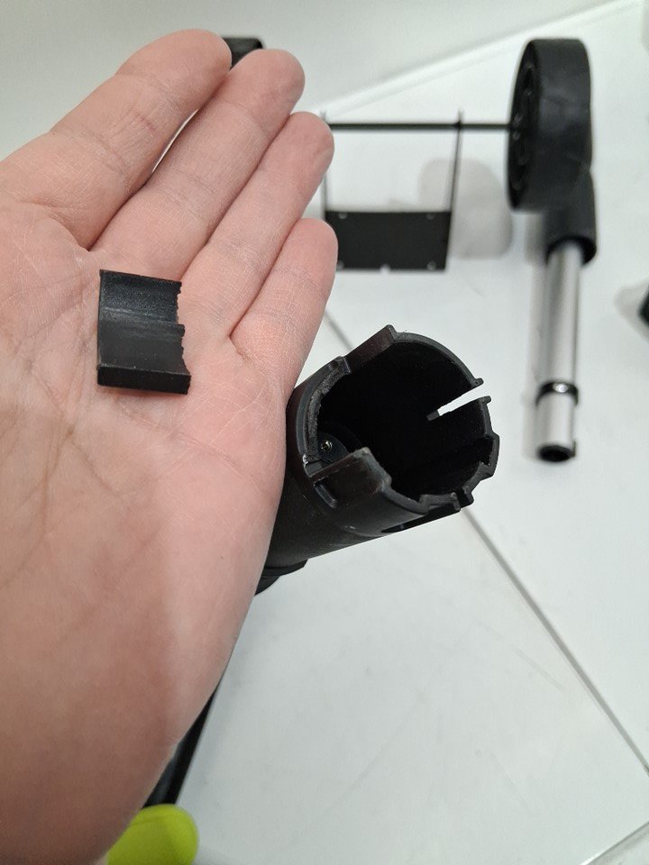 please note there is a small bit of plastic that is broken between the handle attachments. this does not affect function, i didn't know where the plastic piece was from until after i had put it together and tested it. tested all components for power.