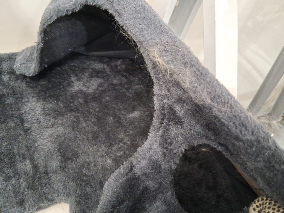 Cat hair & scratches on scratching post from previous use, item missing assembly manual for piece count but all pieces appear present