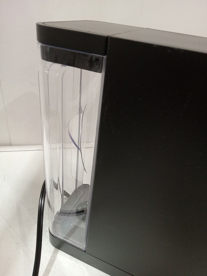 Water tank is cracked and the bottom plate is missing, can likely be used as is or replaced. Tested for power only. faint water marks in the tank form previous use.