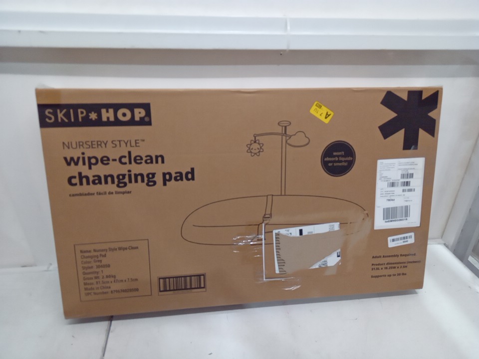 SKIP HOP WIPE-CLEAN CUSHIONED FOAM CHANGING PAD WITH TUCK-AWAY TOY BAR, FOR BABIES UP TO 30LBS - GREY - (MODEL:304050)