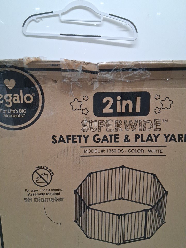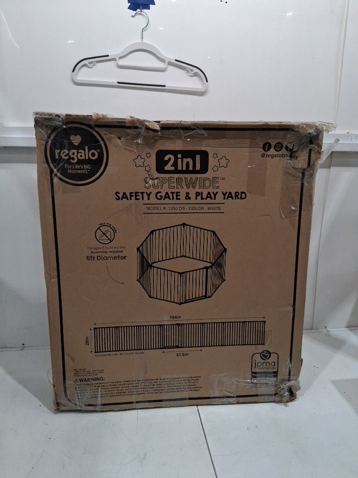 REGALO 2-IN-1 8-PANEL SUPER WIDE METAL SAFETY GATE/PLAY YARD - FITS OPENINGS UP TO 194" - 28" HIGH - WHITE - (MODEL: 1350DS)