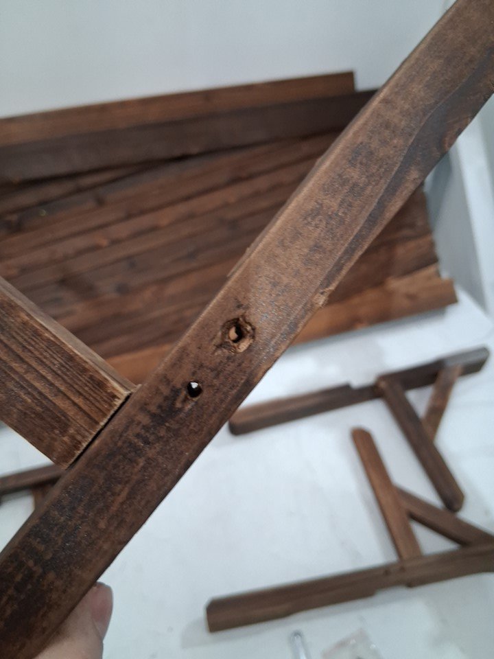 Product has some divots around the assembly holes indicating previous assembly (See photos)