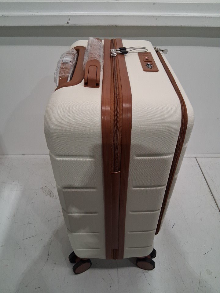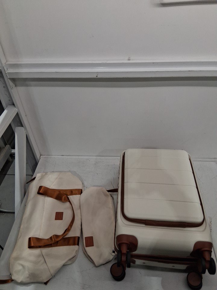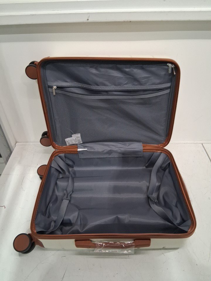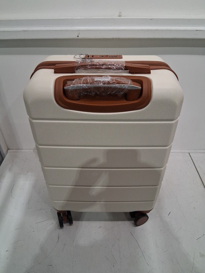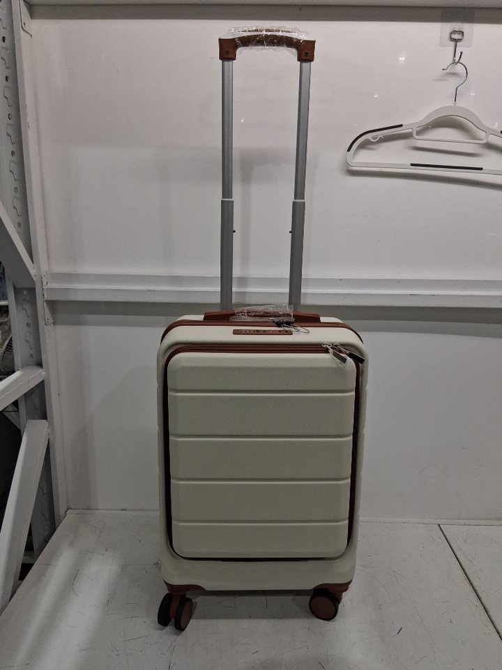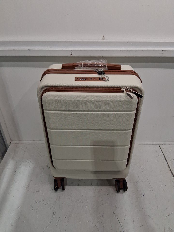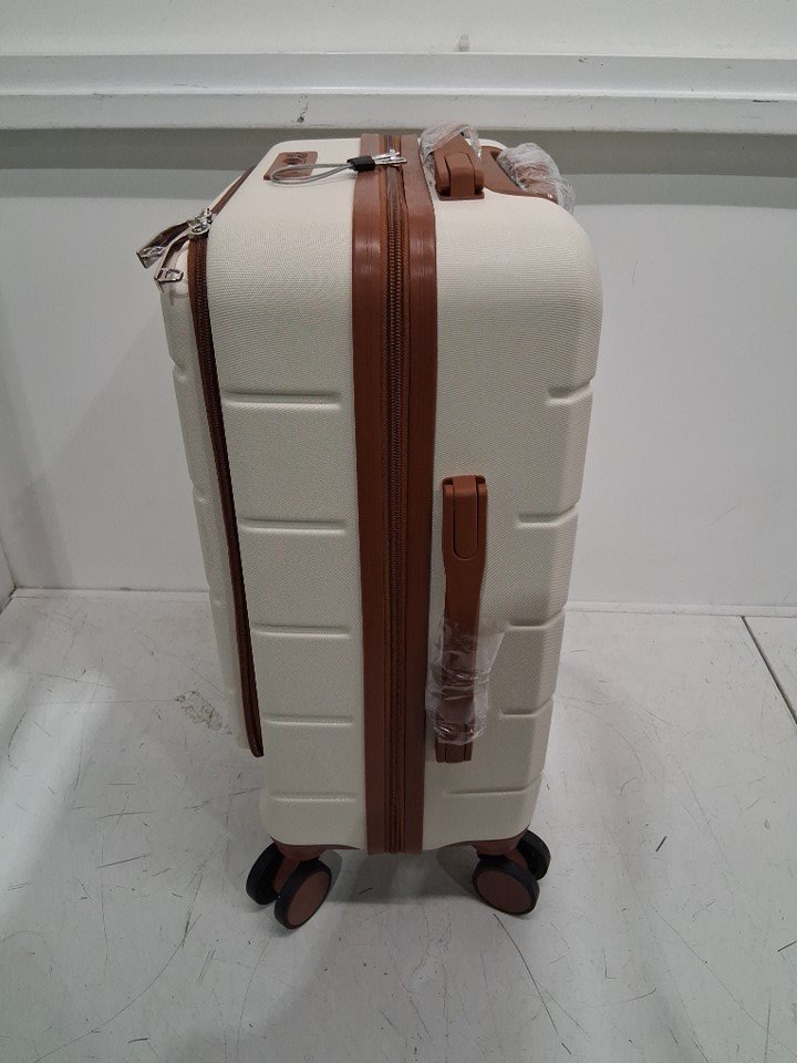 3pc luggex hard shell carry on travel bag/luggage set with front pocket and spinner wheels - beige (model: h1f-zwt20-tts)