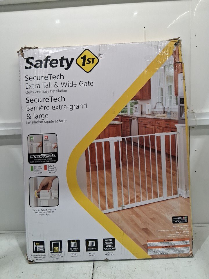 SAFETY 1ST EXTRA TALL & WIDE EASY INSTALL GATE - 36" X 29"-47" - WHITE - (MODEL: ga146cwho2)