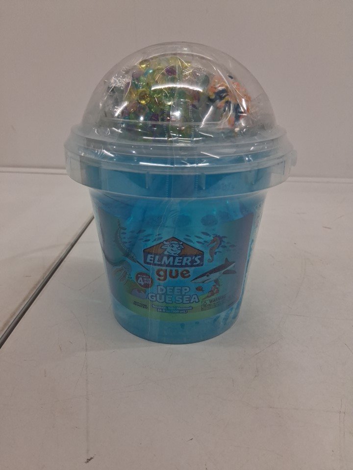 elmer's deep sea gue bucket of premade slime with 4 mix-ins - 24oz - blue
