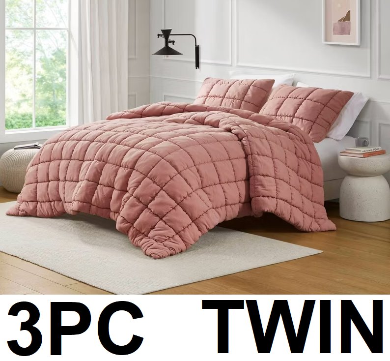 3PC Intelligent Design Dream Puff Down Alternative Warm Soft Comforter Mini Set WITH TWO SHAMS - TWIN - ROSE (MODEL: