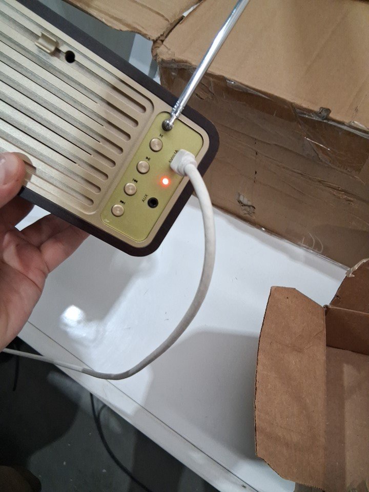 Tested for power with radio and bluetooth Is missing its USB-C charger cable