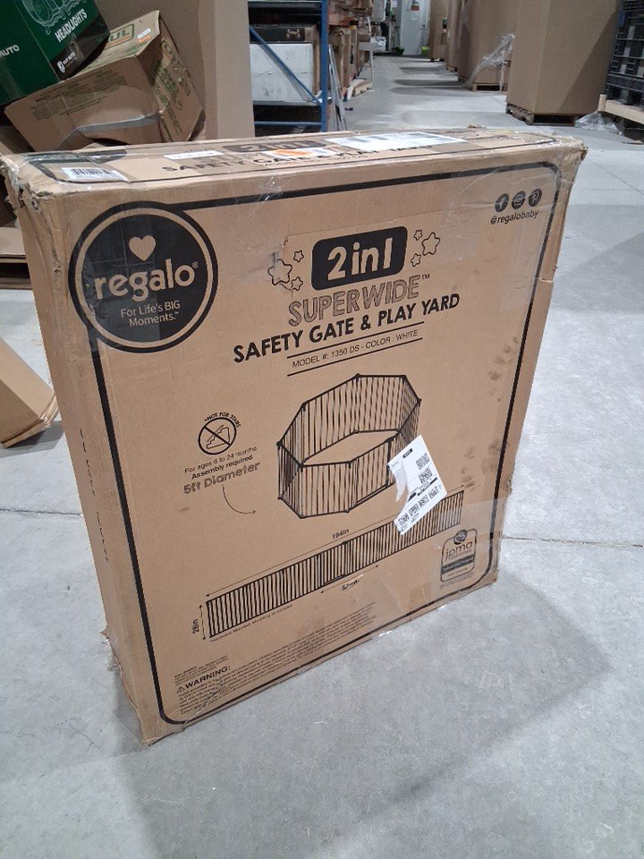REGALO 2-IN-1 8-PANEL SUPER WIDE METAL SAFETY GATE/PLAY YARD - FITS OPENINGS UP TO 194" - 28" HIGH - WHITE - (MODEL: 1350DS)