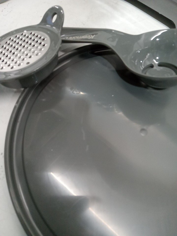 very faint watermarks on the top, light scratches on the lid from previous use. no other signs of use. see photos. tested for power
