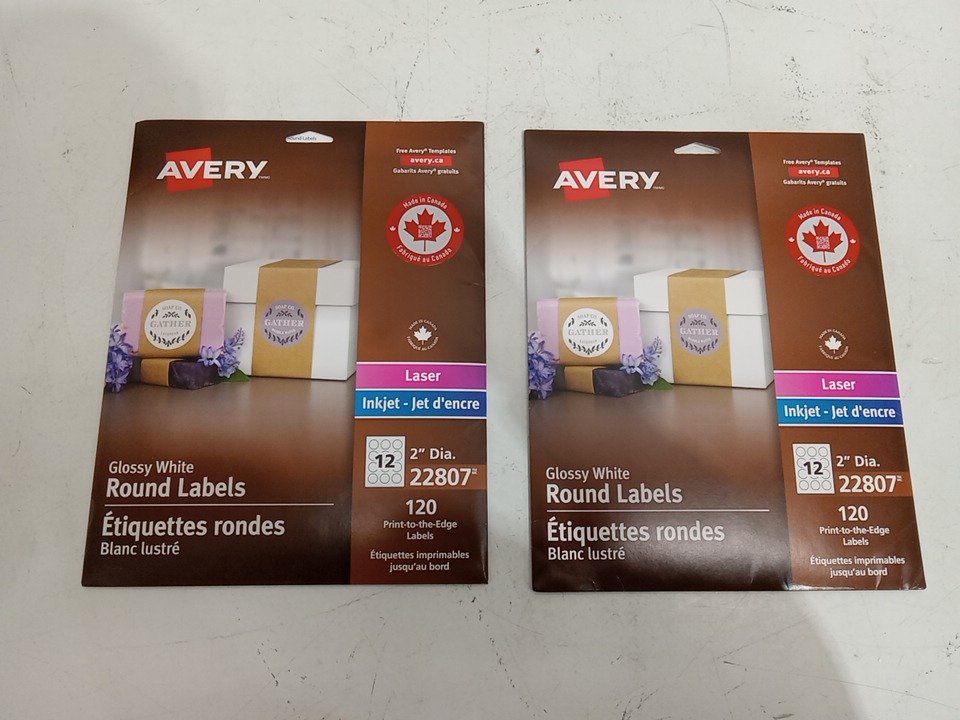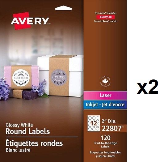 AVERY LASER GLOSSY ROUND LABELS - 120 LABELS - 2" - WHITE (model: 22830)
