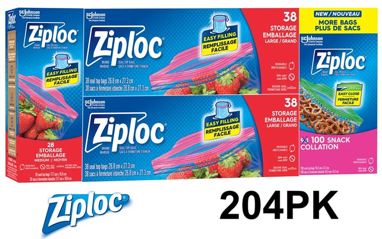 204PK Ziploc Pantry Variety Pack - LARGE/MEDIUM/SMALL (MODEL:1272880)