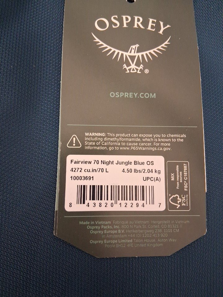 women's osprey fairview 70 traveling backpack with detachable backpack - 70l - night jungle blue (model: ‎ 10003691)