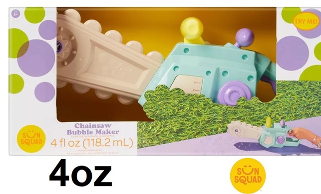 sun squad chainsaw bubble maker toy - 4OZ CAP - blue/beige