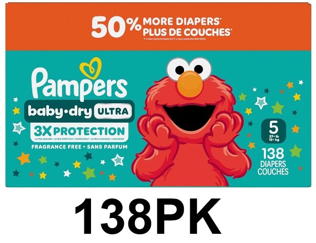 138pk Pampers Baby Dry Ultra Diapers - size 5 - elmo sesame street