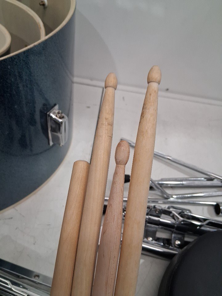 The drumsticks have some marks on them from use, see photos.