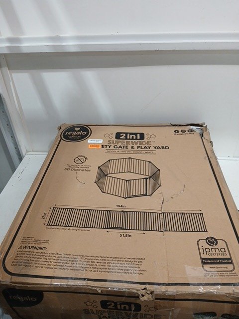 REGALO 2-IN-1 8-PANEL SUPER WIDE METAL SAFETY GATE/PLAY YARD - FITS OPENINGS UP TO 194" - 28" HIGH - WHITE - (MODEL: 1350DS)