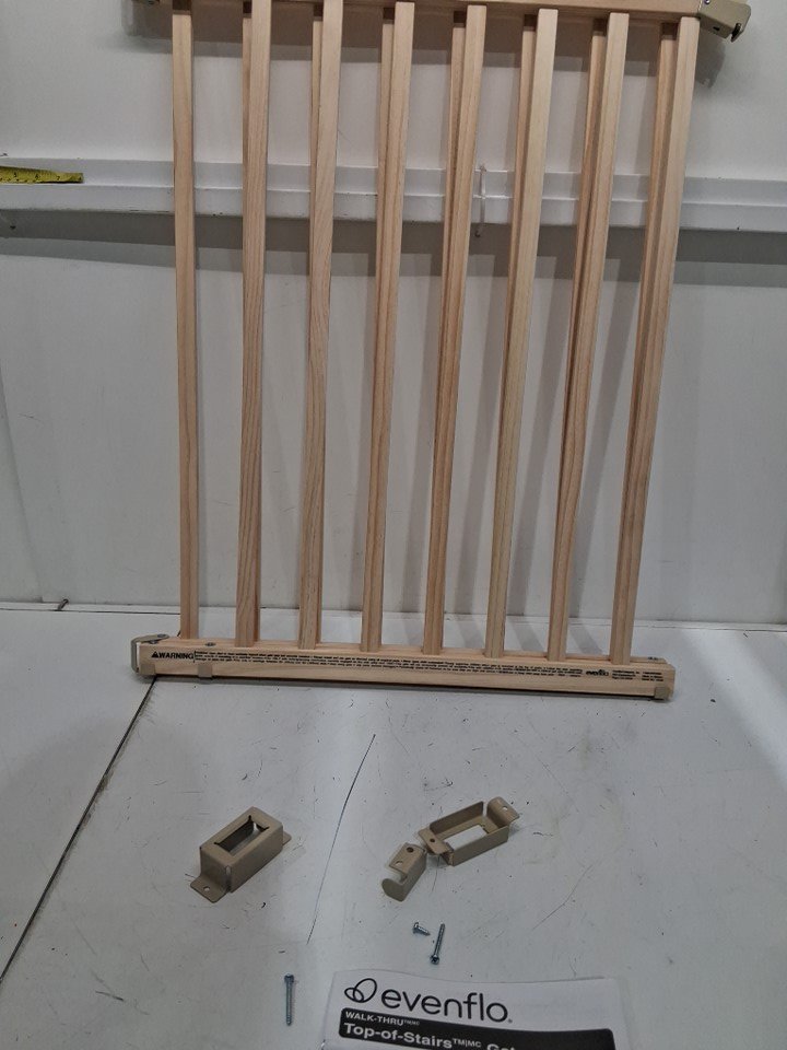 EVENFLO WALK-THRU TOP OF STAIRS extra wide BABY and PET GATE - 32" x 30" - 48" - NATURAL WOOD brown (MODEL: 1050)