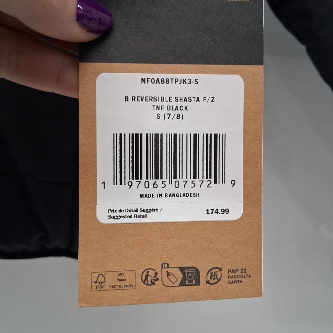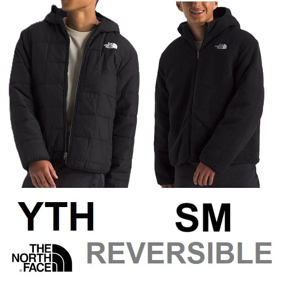Boys The North Face reversible shasta full zip jacket with hood - SMALL (7/8) - Black (Style: nf0a88tpjk3-S)