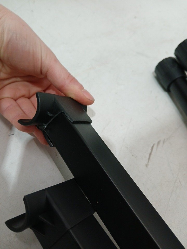 only bench and stand remain piece where leg attaches is slightly broken but still fully functional. may need additional generic hardware. some glue residue left on seat of bench.