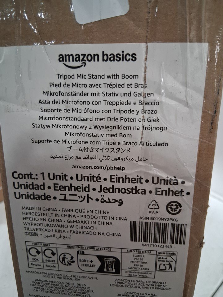 AMAZONBASICS FOLDING TRIPOD MICROPHONE STAND WITH BOOM ARM - 3FT TO 7FT - BLACK (MODEL: TMS130)